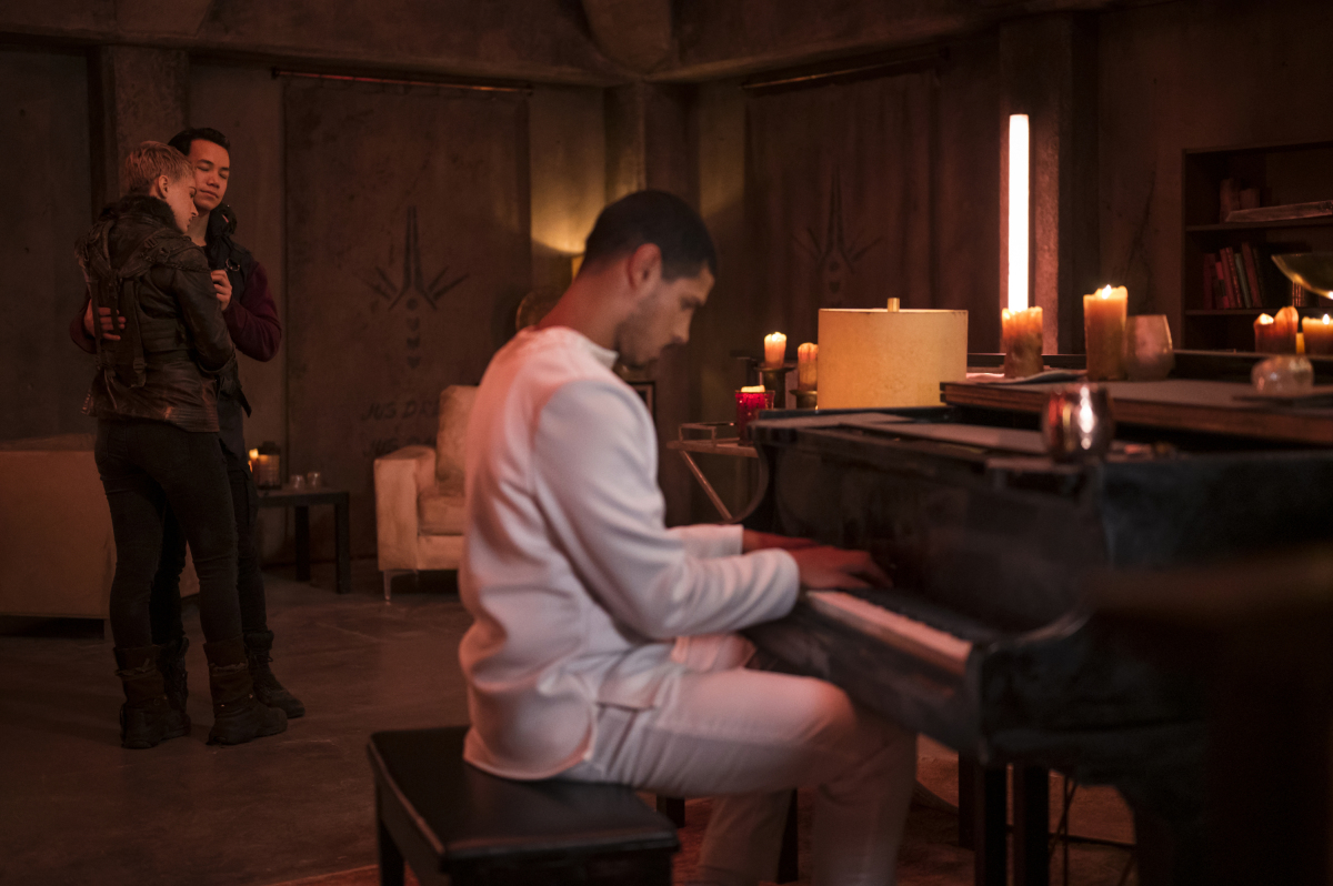 The relationship between Hope and Jordan is nice enough, and the actors’ charm manages to make it work in spite of how obvious it is for the only two people in that age bracket to get together, Becho shippers be damned. Far more interesting was Echo and Niylah’s interaction, and frankly Niylah’s whole vibe. Niylah went through a lot in the bunker as well, though it’s been far less examined up until now, and even as she drank herself into a stupor at the memories of it, no one seemed all that interested in asking her about it. Echo, meanwhile, finally opened up about her real identity, perhaps only because she was speaking to someone so drunk she could pretend Niylah wouldn’t remember the next day. But it feels like no coincidence that they were scene partners.