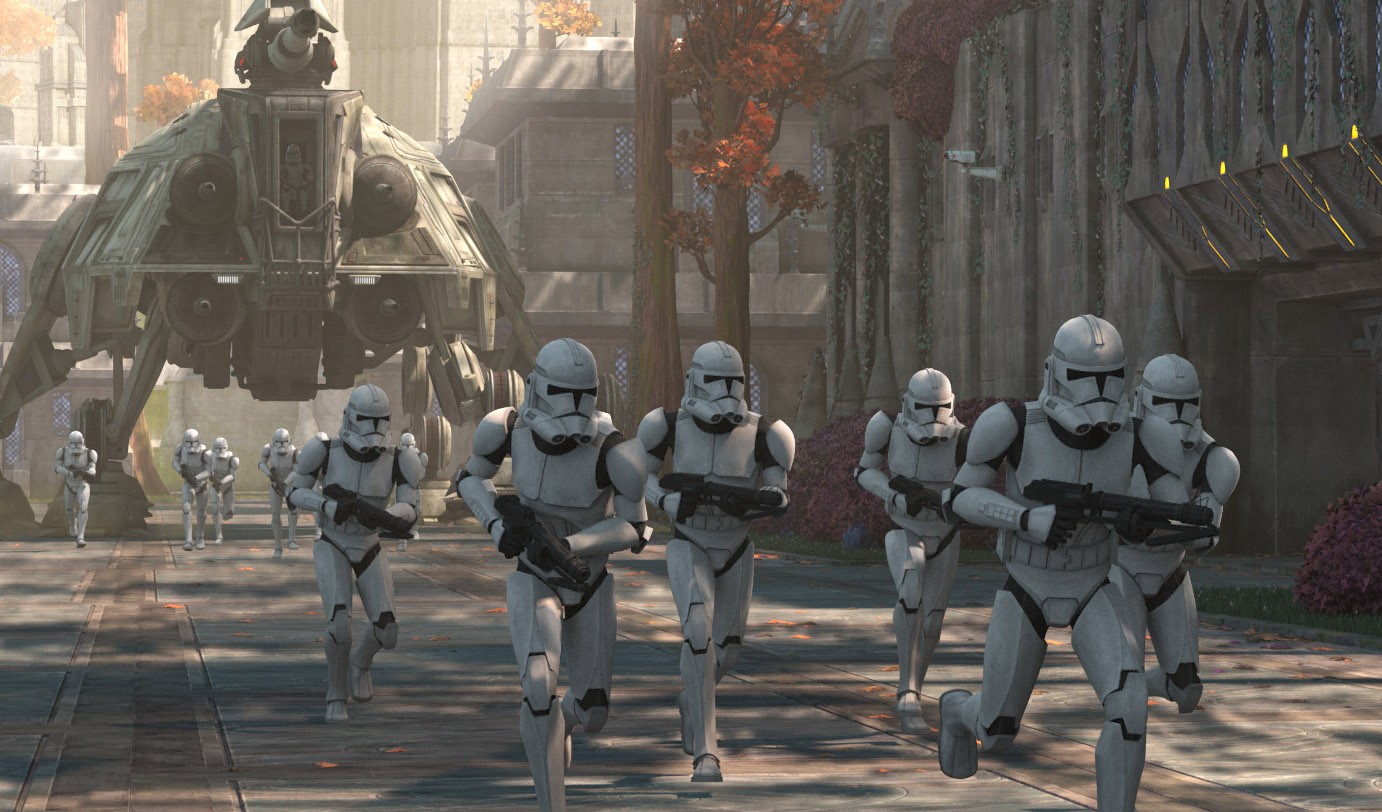 The major way in which the episode doesn’t live up to its lofty description is with the role of the senator. Siddig plays Avi Singh as soft spoken and polite even in battle. But that’s a matter of affect, not action. He says “you’re going to have to trust me” in a moment of battle, but never gets time to talk about what the experience of any of this has been like for him. What were his grievances against the Republic? Does he believe the Empire is just the same, merely a continuation of the Republic? How does he feel about the defeat of the Separatists? About working with clones? We never really learn any of this, except for the implication that Singh is grateful to have been saved from torture. Instead of a confrontation between Singh and Echo, the two simply have a gentle moment of decision, when Echo convinces Singh he needs to leave his people to live to fight another day.