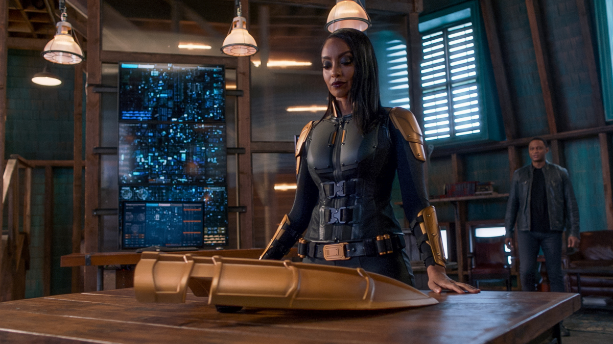 Kelly makes her debut as Guardian in an impressive episode that actor Azie Tesfai (Kelly Olsen) co-wrote and David Ramsey directed. Ramsey previously directed a few great episodes of Arrow. Here, his direction gives the proceedings a feeling of gravitas – everything feels a bit more special, the shots more cinematic and creative. For Tesfai’s part, adding “writer” to her credits makes her the first Arrowverse actor to do so and adds a level of lived experience that grounds the episode in very real issues of race and privilege, even as Tesfai deftly weaves those themes into the fantastical aspects of the show.