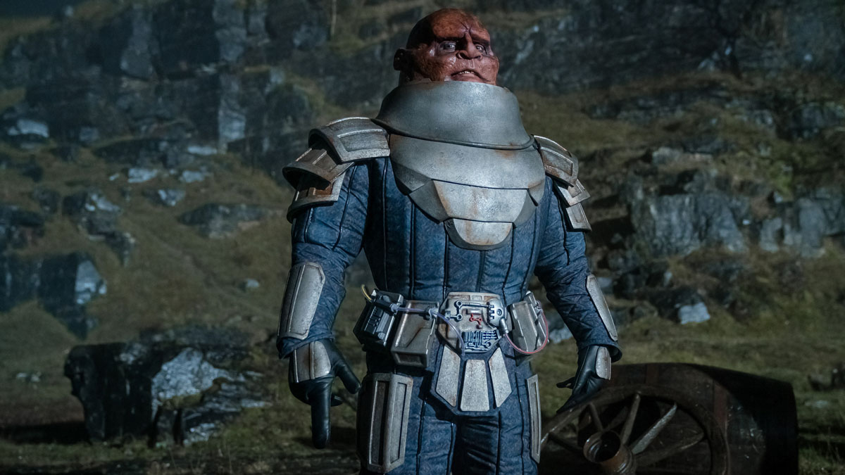 Either way, we soon learn that the Sontarans are behind the slaughter. We’ve seen quite a lot of them since the show’s revival, but mostly as part of a larger alliance or, thanks to Steven Moffat’s love of Strax, comic relief. This is the first time since ‘The Sontaran Stratagem’ that the series has set them up to be a credible threat. They’re something of a fusion here, returning to the lumpier, asymmetrical aesthetic of the classic serials while retaining the technology and traditions of their more recent appearances, and the older design definitely helps sell the idea that these are battle-hardened soldiers with more than a few war wounds on display.